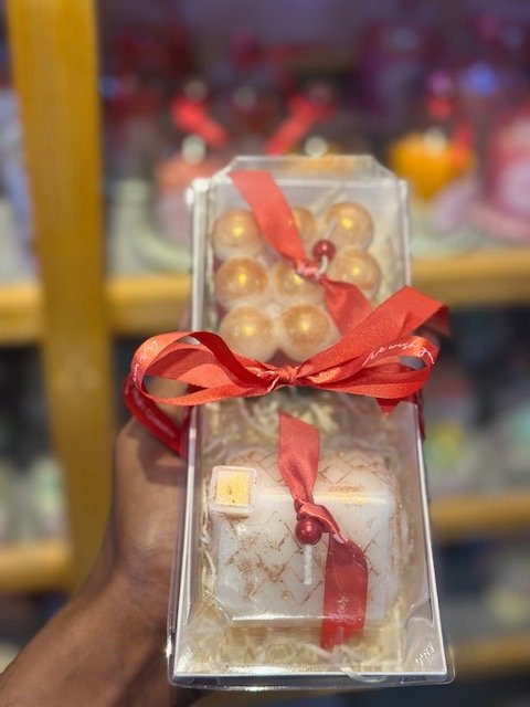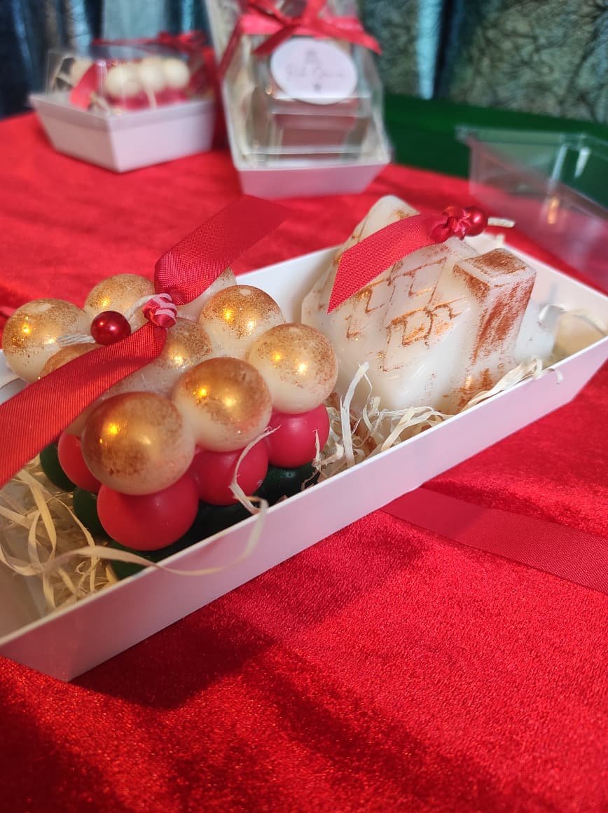 Celebrate the season with this handcrafted festive candle duo made using organic soy wax and infused with the warm, cozy aroma of Bourbon Vanilla. Each box includes a classic Bubble Candle and a charming Hut Candle, perfect for Christmas gifting and décor.