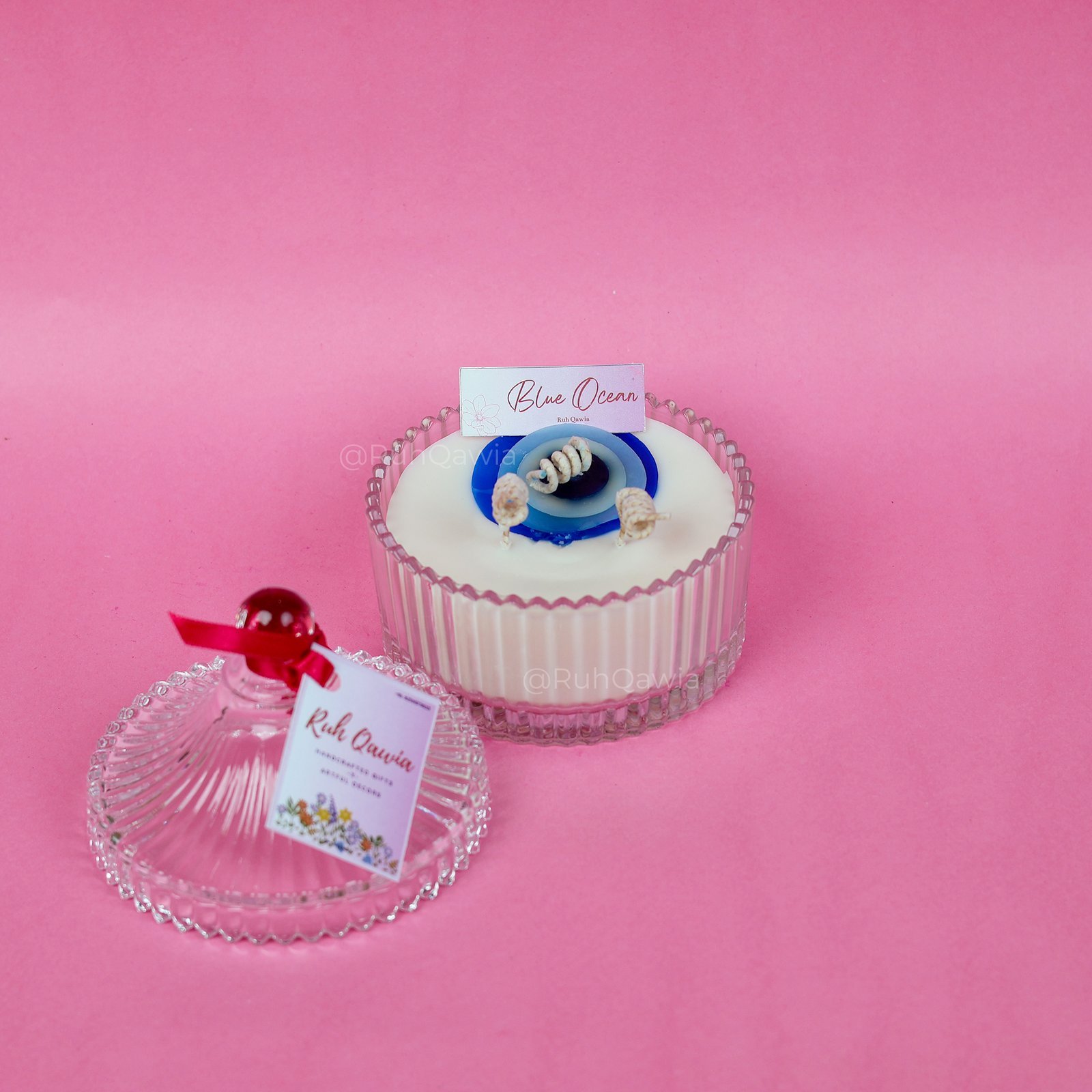Round Crystal Jar Candle – Evil Eye – Blue Ocean