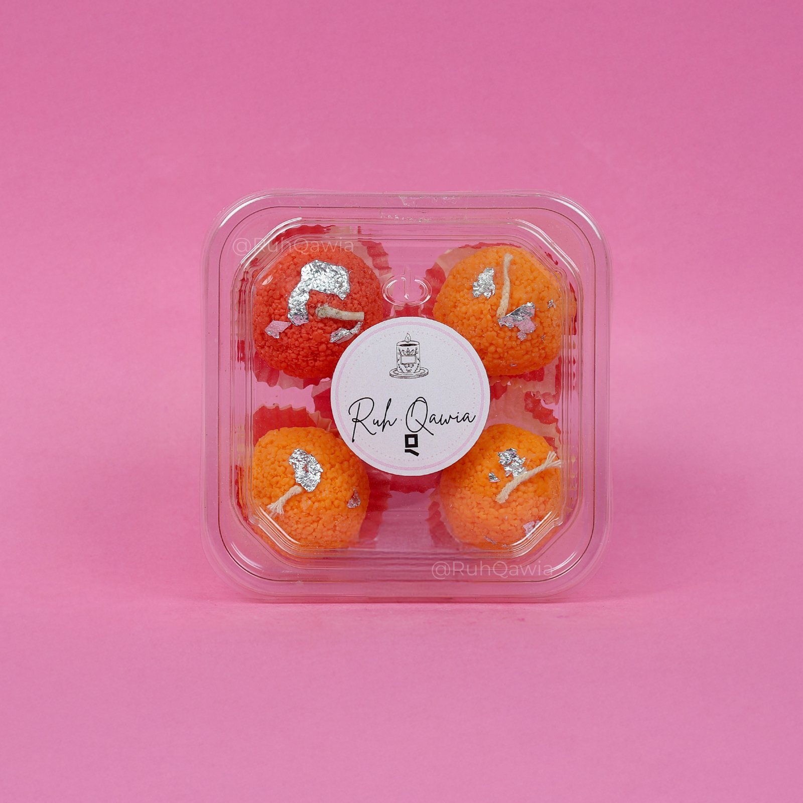 A box full of joy! These Laddoo-inspired candles are designed to look just like the beloved festive sweet, but crafted from pure, non-toxic soy wax. A playful and decorative piece that lights up occasions in the most nostalgic way.