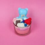 Crafted to resemble a delightful pudding dessert, this candle is topped with a cute pink teddy, berries, chocolate, and creamy swirls – a true treat for the eyes. Its vibrant and detailed design makes it a perfect decorative centerpiece for birthdays, cafes, bakeries, or any space that thrives on cheerful vibes.